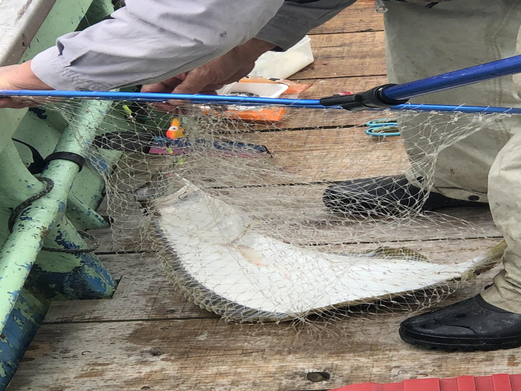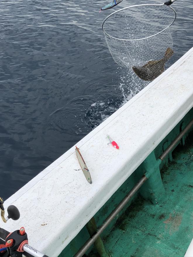 ヒラメは昨年より早い感じで潜行板を使ってのトローリングの調査ですが、小ぶりが多い中で数は上がってきてました。ジグでもヒラメは上がり始めてます。