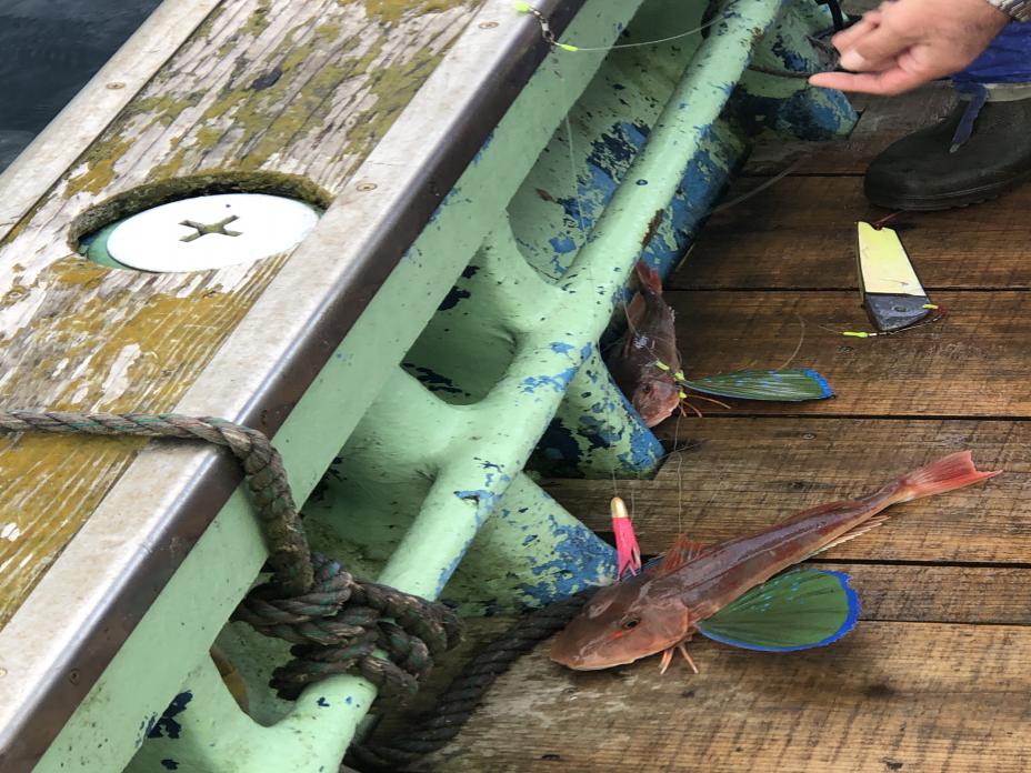 深場は潮が早い日が多く、サバもまだまだ元気で邪魔をします(底付近のサバは良型で中層は小ぶり)。何とか底までたどり着いて、サバの攻撃を受けなければメヌケ、タラ、ワラサひろえる感じです。