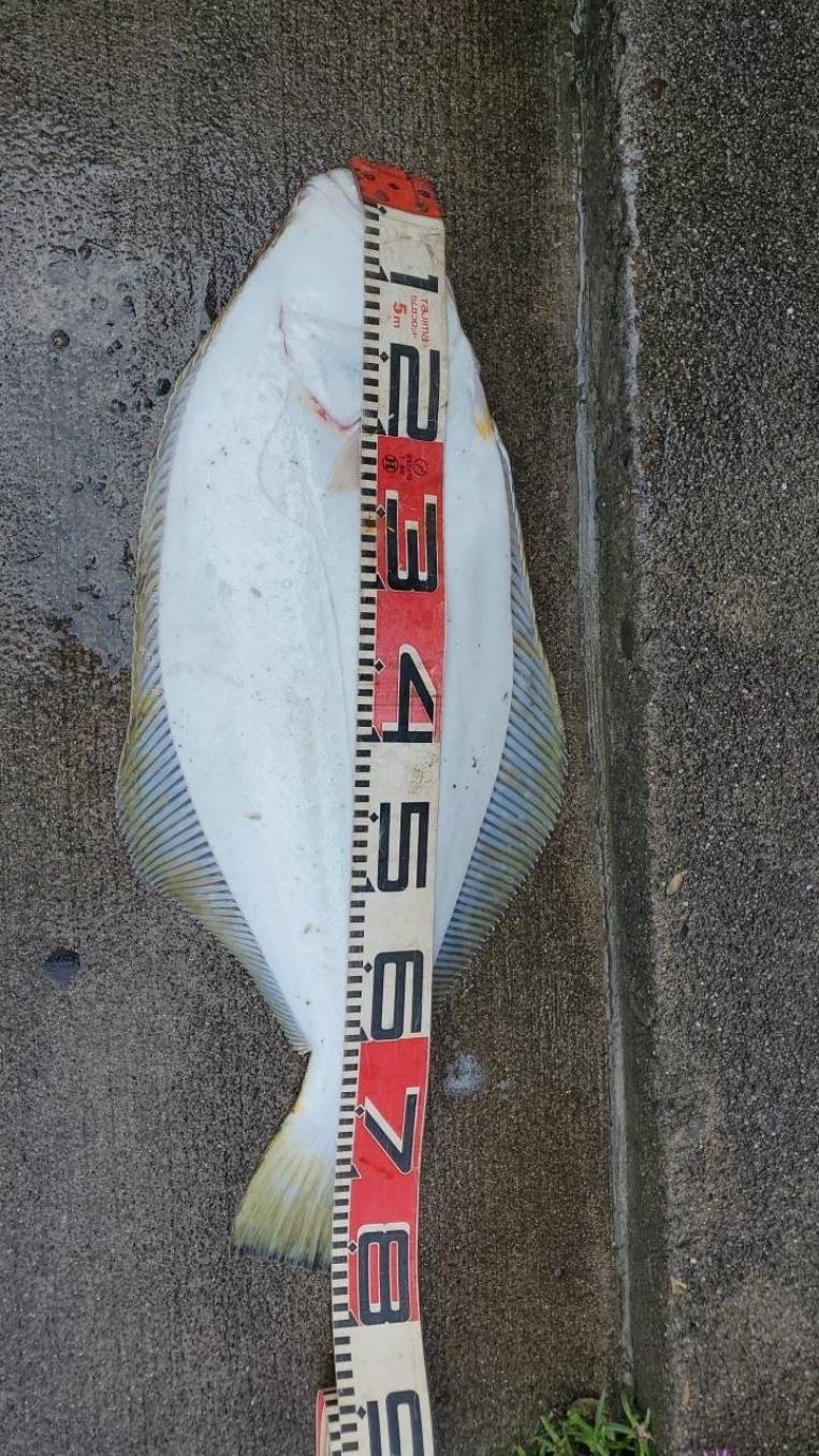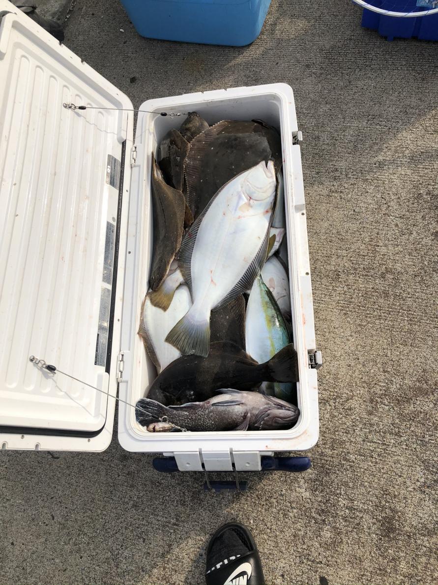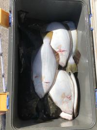 浅場(15m)で数枚拾い、当たりはあるが喰ってこない。良型狙いで漁礁に入り68cmを引き上げるも後が続かず( ; ; )良場所探しに移動の連続での納竿です。竿頭10枚の釣果との事でした。