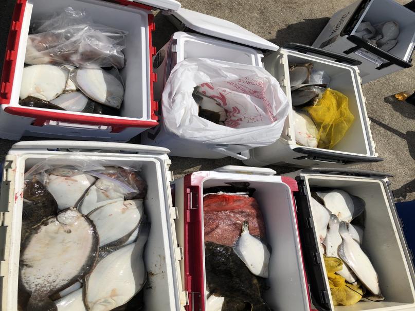 カレイはまだ頑張れるかな?6/24 ヤマセの風が続く中、風の合間を見ての釣行でした。ウネリも残りカレイも終盤かと思い、あまり期待をしないで出船しました。小ぶりが混じる中で竿頭77枚と、その他メンバーも30〜70枚と思わぬ?釣果でした。