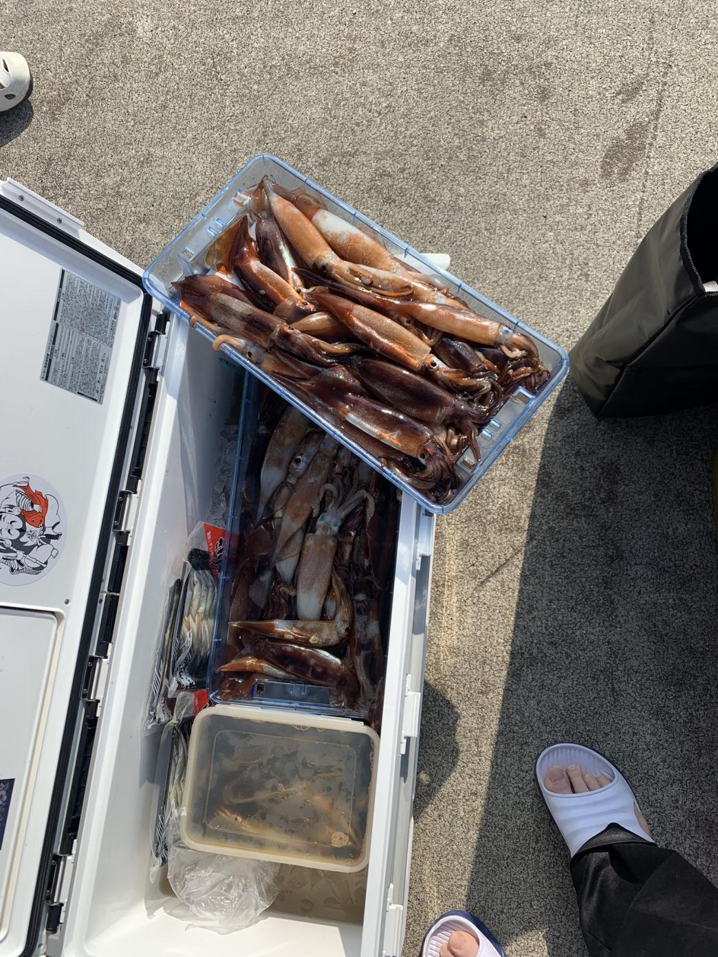 イカは日々差が出る釣行が続いています。良ければ50杯位/1人もあり、渋い時は2桁が厳しい日もあります。今時期からヤリイカ(良型)も混じり始め異変を感じてました。