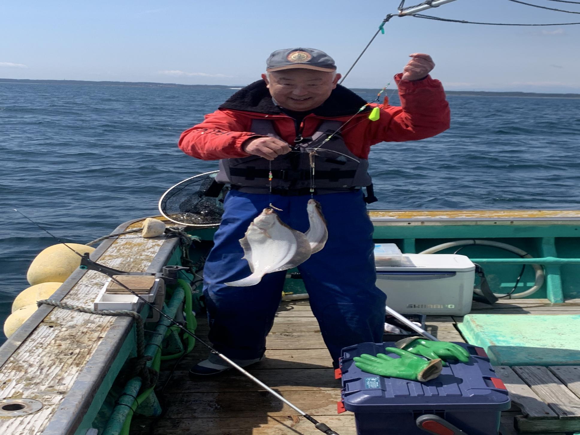 カレイはポイントも狭く、日により差が出ている状況です。竿頭で10〜40枚(40枚は僚船情報です。)珍しく松川カレイも上がっていました。5月は水温も上昇し釣果が上向く事を期待しています。餌の手配も可能ですのでご希望の方はご連絡下さい。